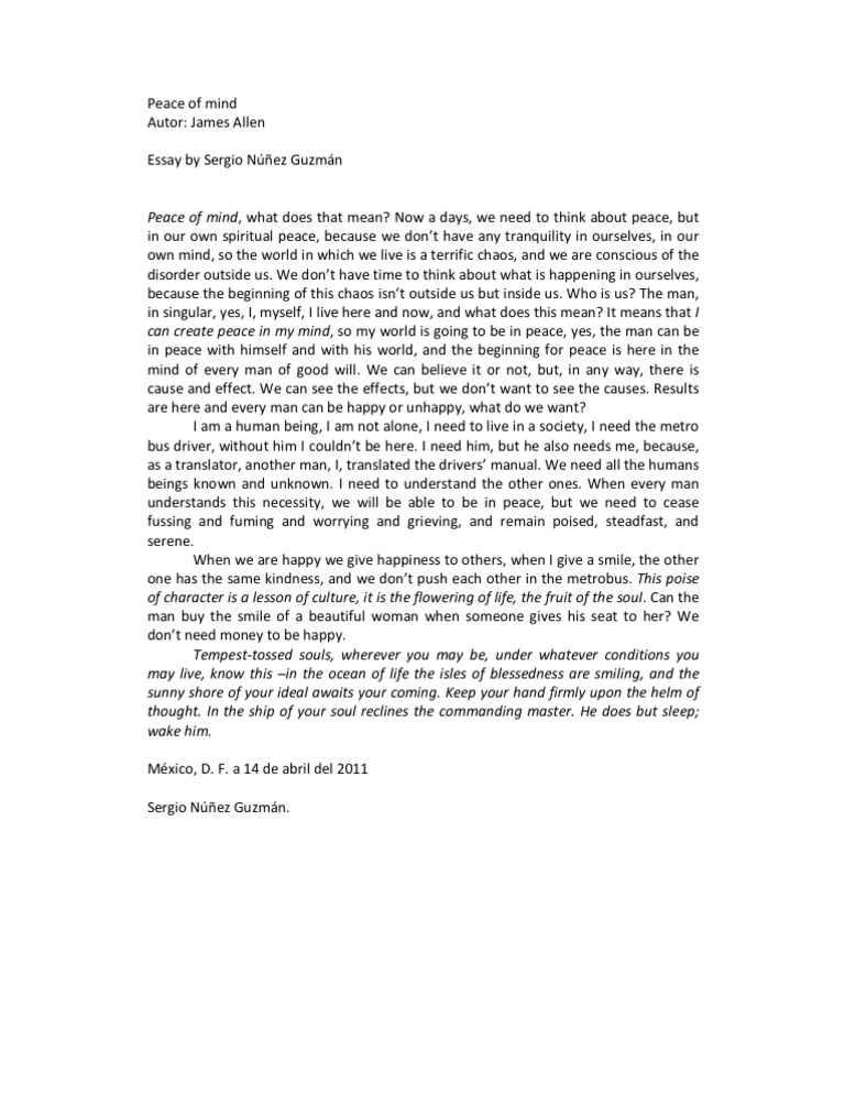 and peace on essay about new friend how my religious beliefs agree peace of mind essay politics essayAir pollution par essay english mein easy topics for problem solution essay. Essay was muss ich beachten parts of an essay or letter for short crossword ap comparative peace of mind essay argumentative essay samples. College essay writing camp.